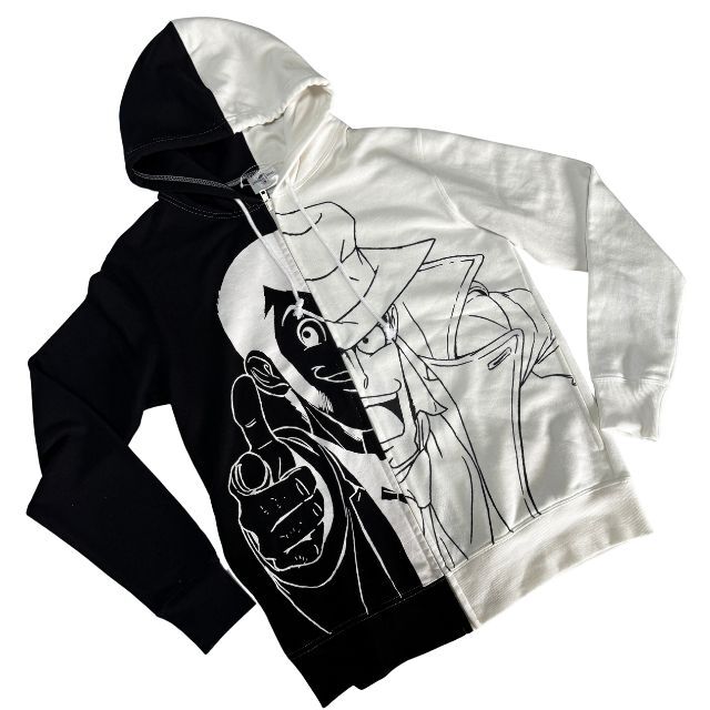 > 未使用 ルパン 三世 銭形 USJ限定 ジップパーカー ハイデザイン ツートン 白黒 ホワイト×ブラック ユニバーサルスタジオ 雅瀬1077