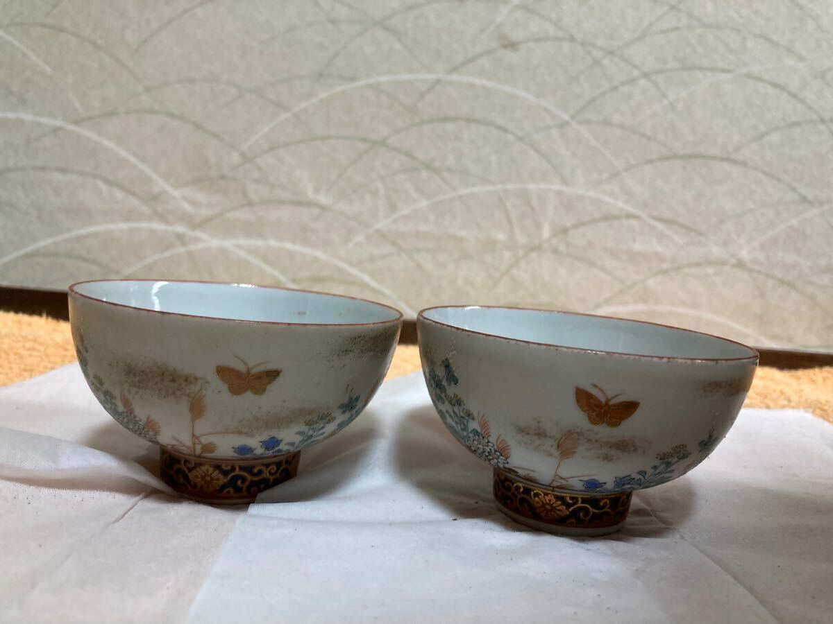 - アンティーク?骨董品?九谷焼?茶碗?湯呑み?色絵?茶器?2個セット?汚れありです。