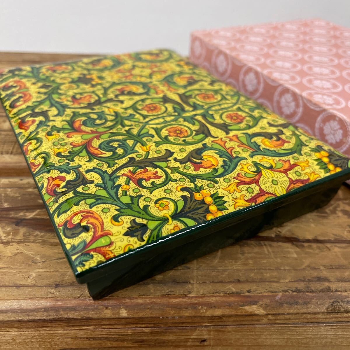 - 未使用 昭和レトロ オリエンタル柄 唐草模様 文箱 小物入れ 当時物 管T-88