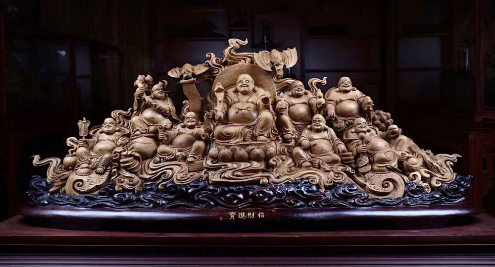 - 【天然沈香木彫】大きな仏像◆八方の財神◆仏像 幅は約: 140(cm)沈香 木彫り仏像 職人手作り jp1522