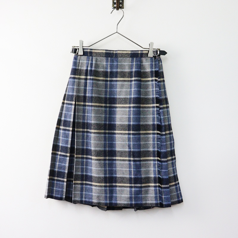 > 美品 オニールオブダブリン O'NEIL of DUBLIN ウールバックプリーツチェックキルトスカート F36/ネイビー系 フレア 巻き【2400014173055】