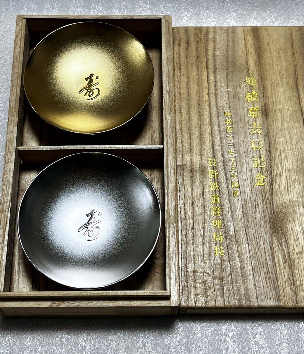 - 未使用 長期保管品 希少 長野鉄道管理局長 効績章受賞 金銀盃 寿 非売品 60's ヴィンテージ レア 物当時 1968年 昭和 盃 酒器 鉄道