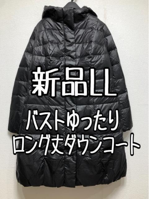 - 新品☆LL♪黒系♪ゆったりバストのロング丈ダウンコート☆w593