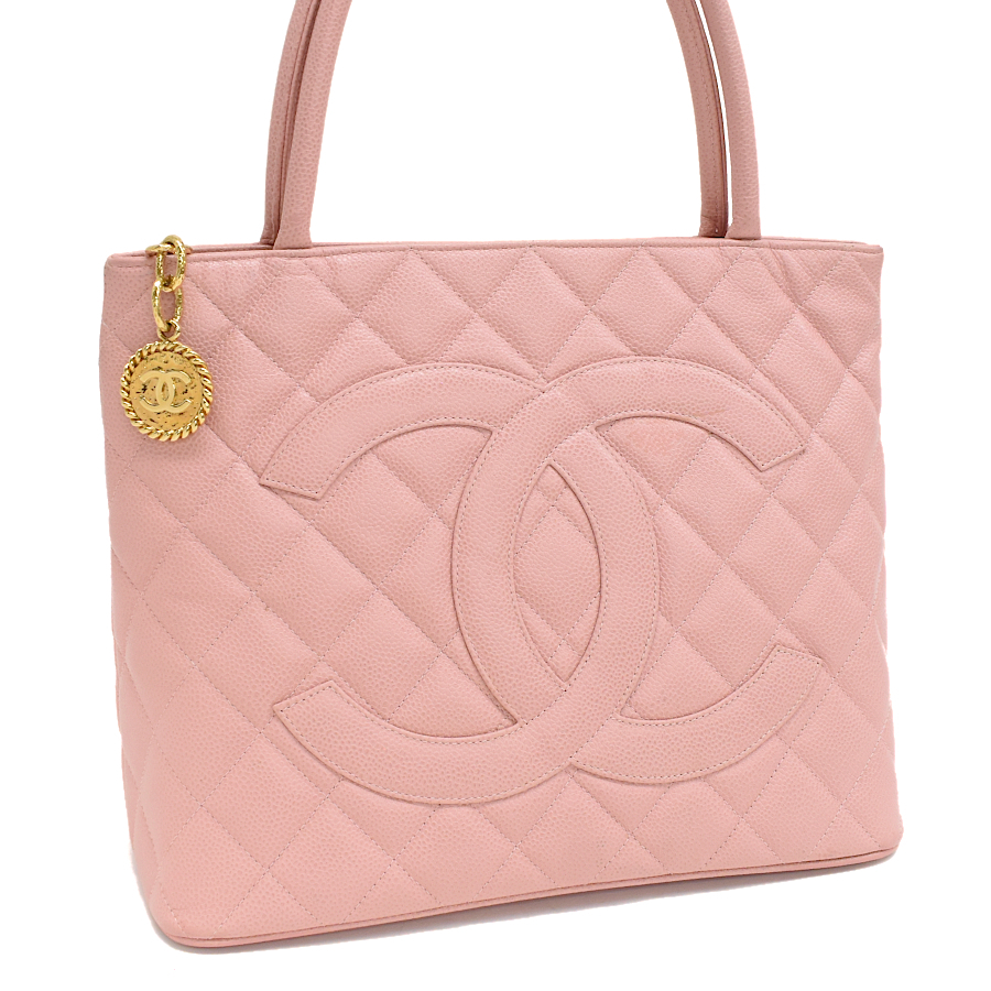 - シャネル 復刻トート ハンドバッグ A01804 キャビアスキン ピンク CHANEL