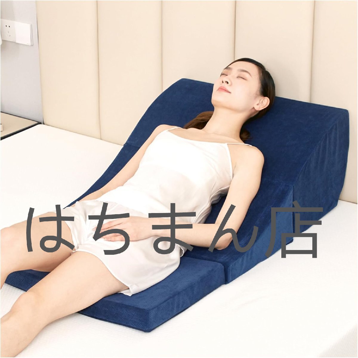 - クッション 背もたれ 三角枕 腰枕 ベッド 逆流性食道炎 妊婦クッション なだらか枕 老人用三角クッション お手入れ簡単 枕なし 青