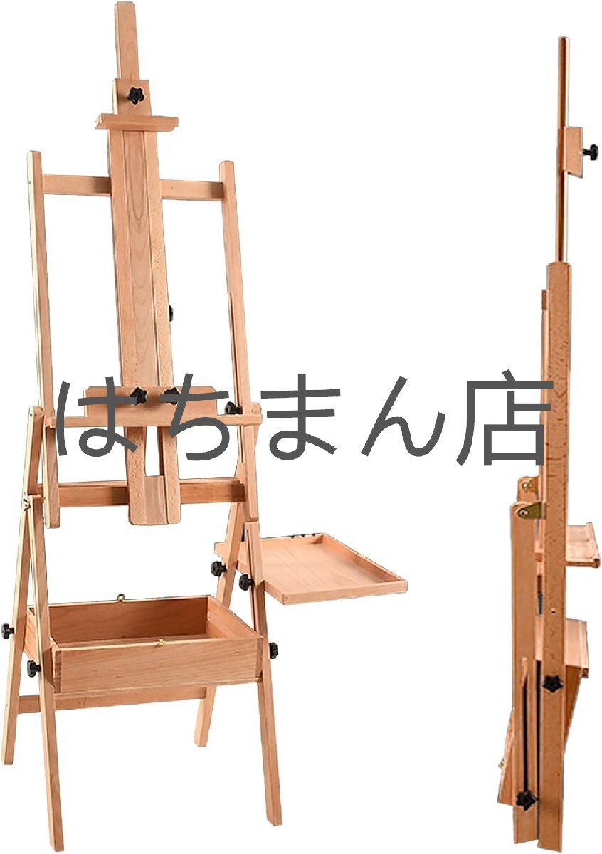- イーゼル 木製 イーゼルスタンド 前傾式 角度を調節でき 引き出し付き折りたたみ収納 高さ152-190cm 看板 E:横置き・縦置き使用