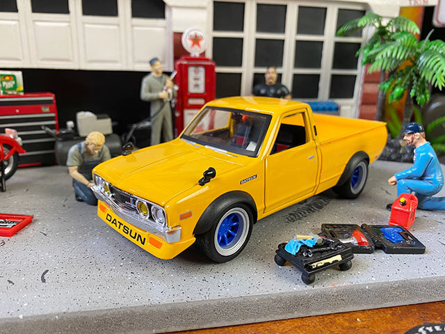 - マイスト 1973年ダットサン ピックアップトラック620カスタム ダイキャストミニカー 1/24スケール ■ アメリカン雑貨 (オレンジ)