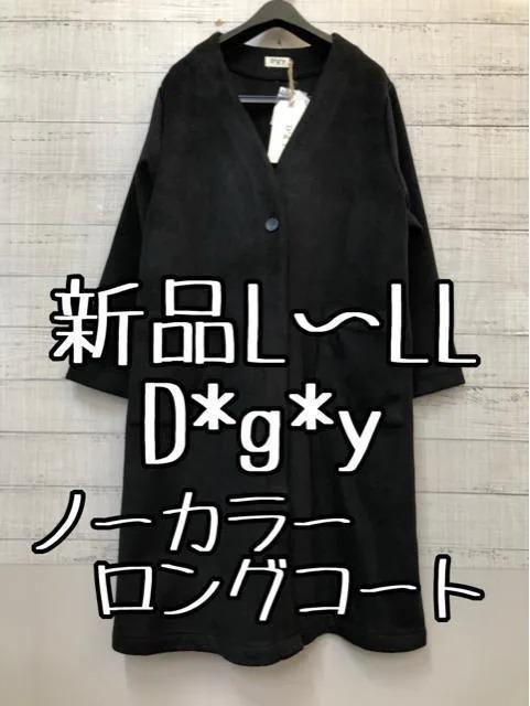 - 新品☆L~LL黒系Dgy滑らか上質ノーカラーロングコートさっと羽織れる☆e265