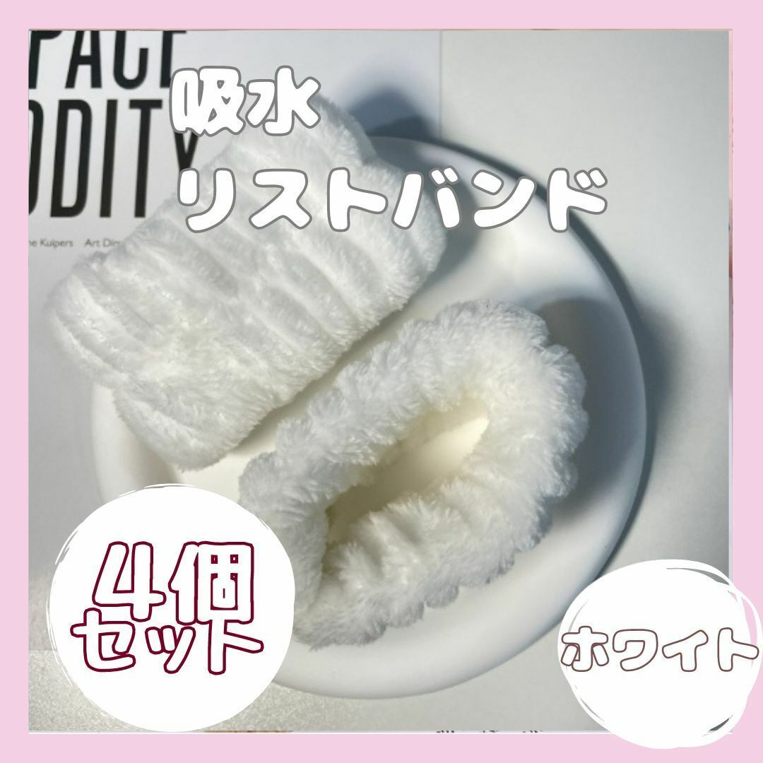 - 吸水リストバンド 水切りバンド 大人気 洗顔 吸水バンド ふわふわ ホワイト