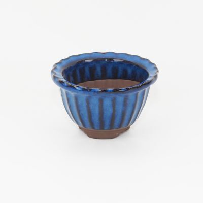 - 盆栽鉢 萬古焼 万古焼 生子立筋 3号 幅10cm×高さ6.3cm 陶器鉢 青色 盆栽 植木鉢 和鉢 和 陶器鉢 花物 実物 草物 盆栽妙