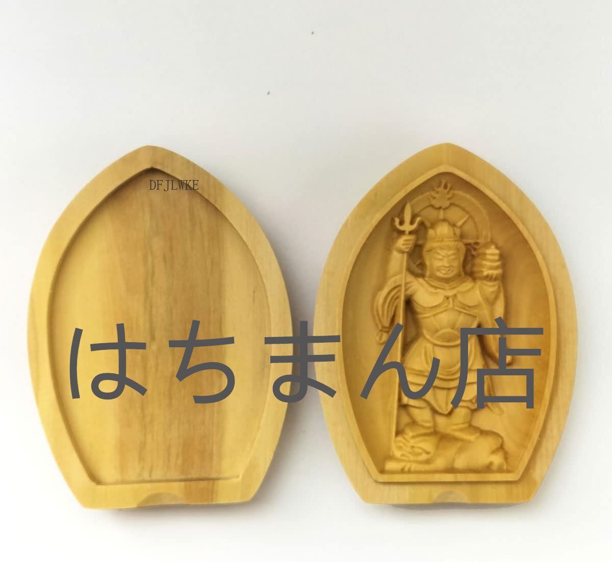 - 木彫りの仏像 開運招福七福神・毘沙門天 柘植製 懐中仏 (高さ6cm、幅4.6cm)◆商売繁盛・無病息災・福徳・福運・厄除け (毘沙門天)