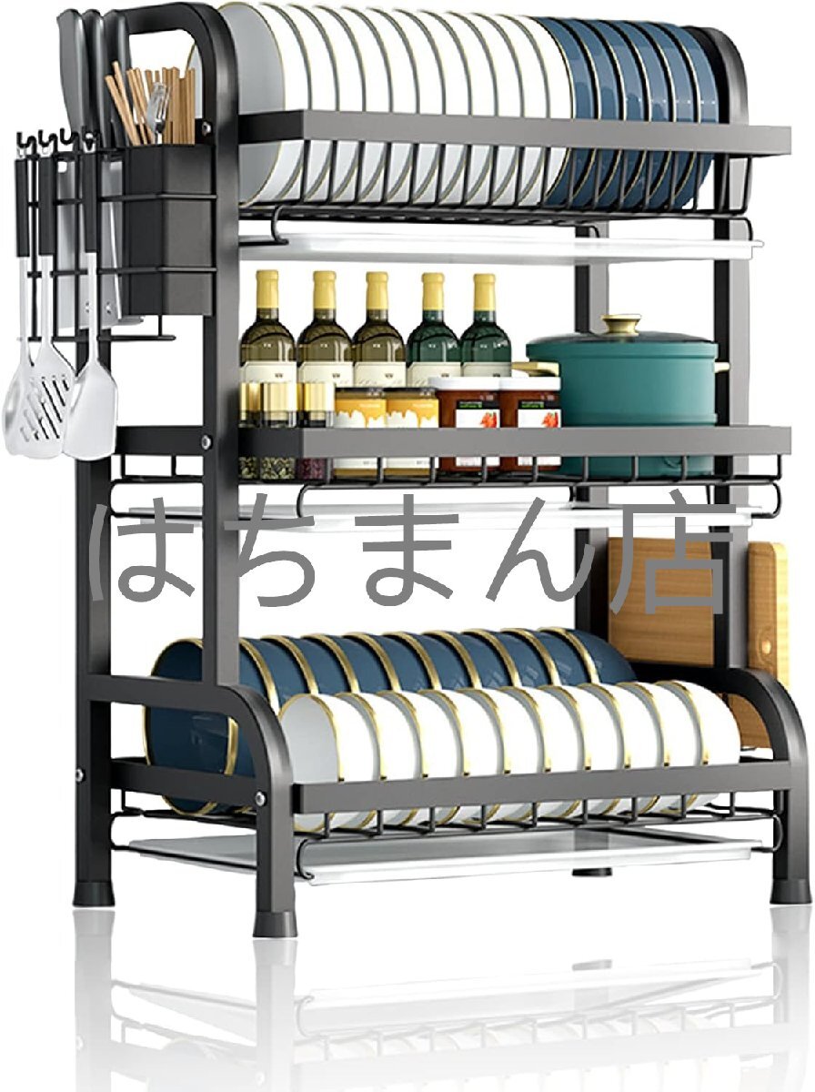 > 食器 水切りラック かご バスケット 水切りかご 3段 炭素鋼 42.5*24*63cm 大容量 収納ラック 箸立て 包丁スタンド まな板立て