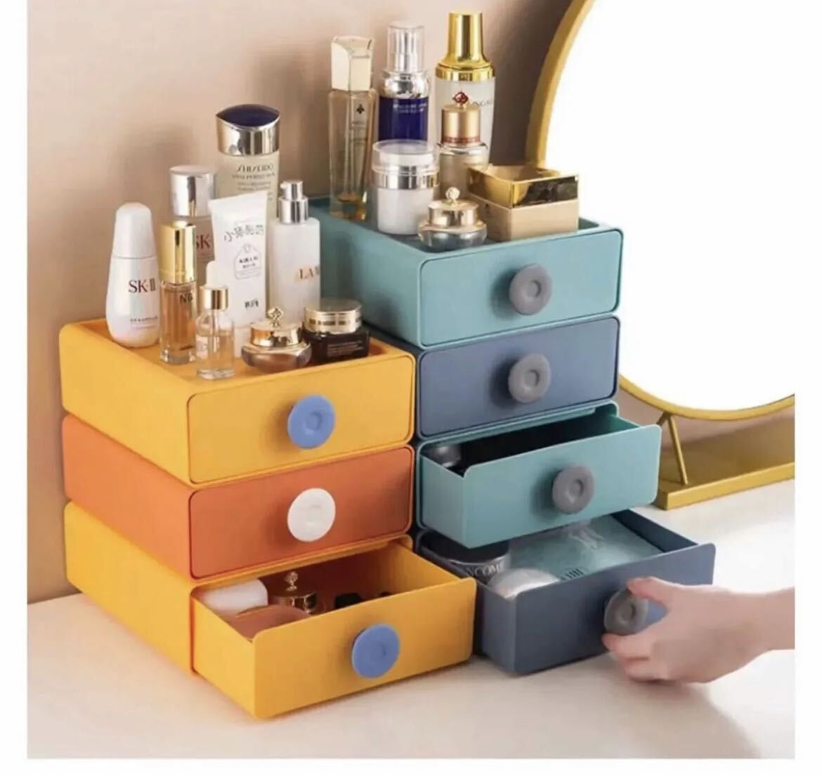 - 【4個セット】卓上小物入れ 引き出しケース 小物整理メイクボックス 洗面所 収納ラック 収納ボックス 文房具収納机がスッキリ デスク上置棚