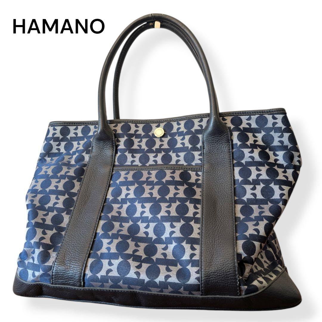 - HAMANO ハマノ ハンドバッグ 総柄 ネイビー レディース 婦人鞄 人気ブランド 訳アリ お洒落な総柄
