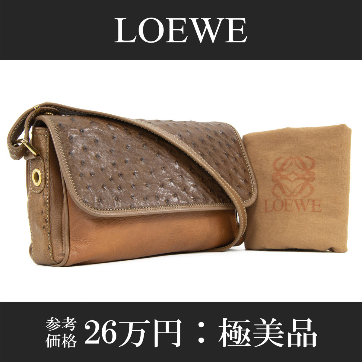 - 本物 送料無料 ロエベ ショルダーバッグ メンズ レディース オーストリッチ 茶色 斜め掛け ヴィンテージ マーク ロゴ 綺麗 鞄 バック L140