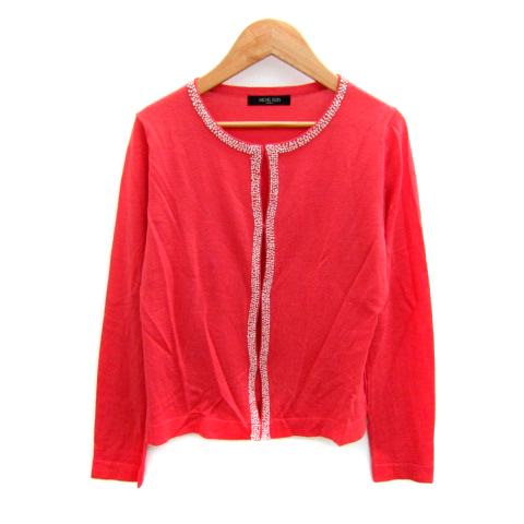 - ミッシェルクラン MICHEL KLEIN カーディガン ミドル丈 ラウンドネック 無地 ビーズ装飾 38 M コーラルレッド /SY28 レディース