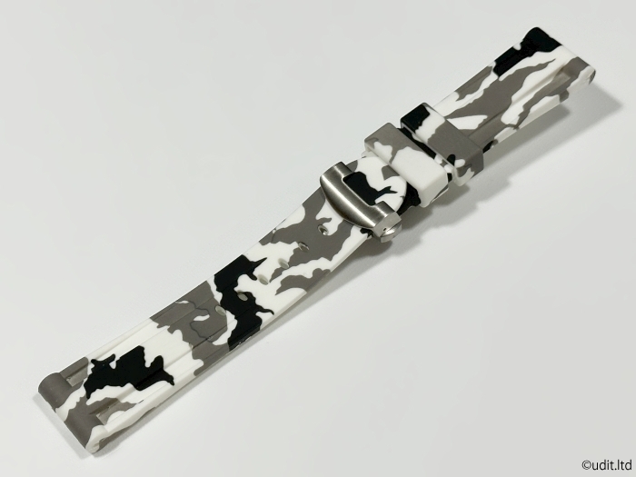 - ラグ幅24mm パネライ対応 腕時計用ラバーベルト ホワイト迷彩 ラバーバンド 腕時計ベルト ルミノール マリーナ ラジオミール等に