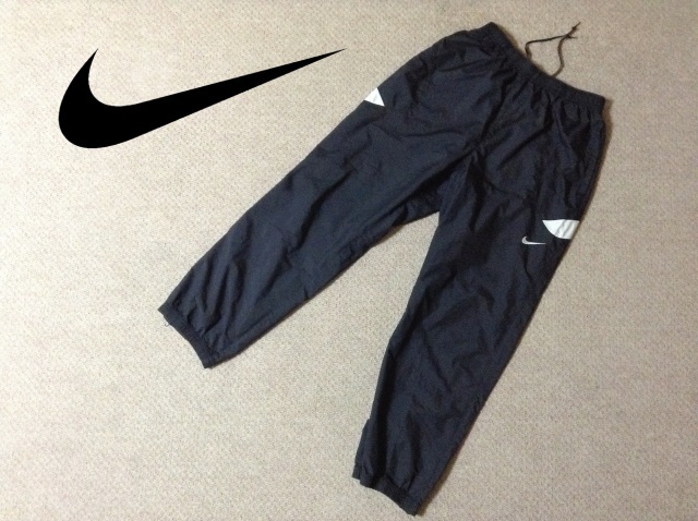 > ★中古★ナイキ サッカー トレーニングパンツ 黒 ブラック 刺繍ロゴ トレーニング ワークアウト 部活 練習 NIKE 00s フットボール 古着