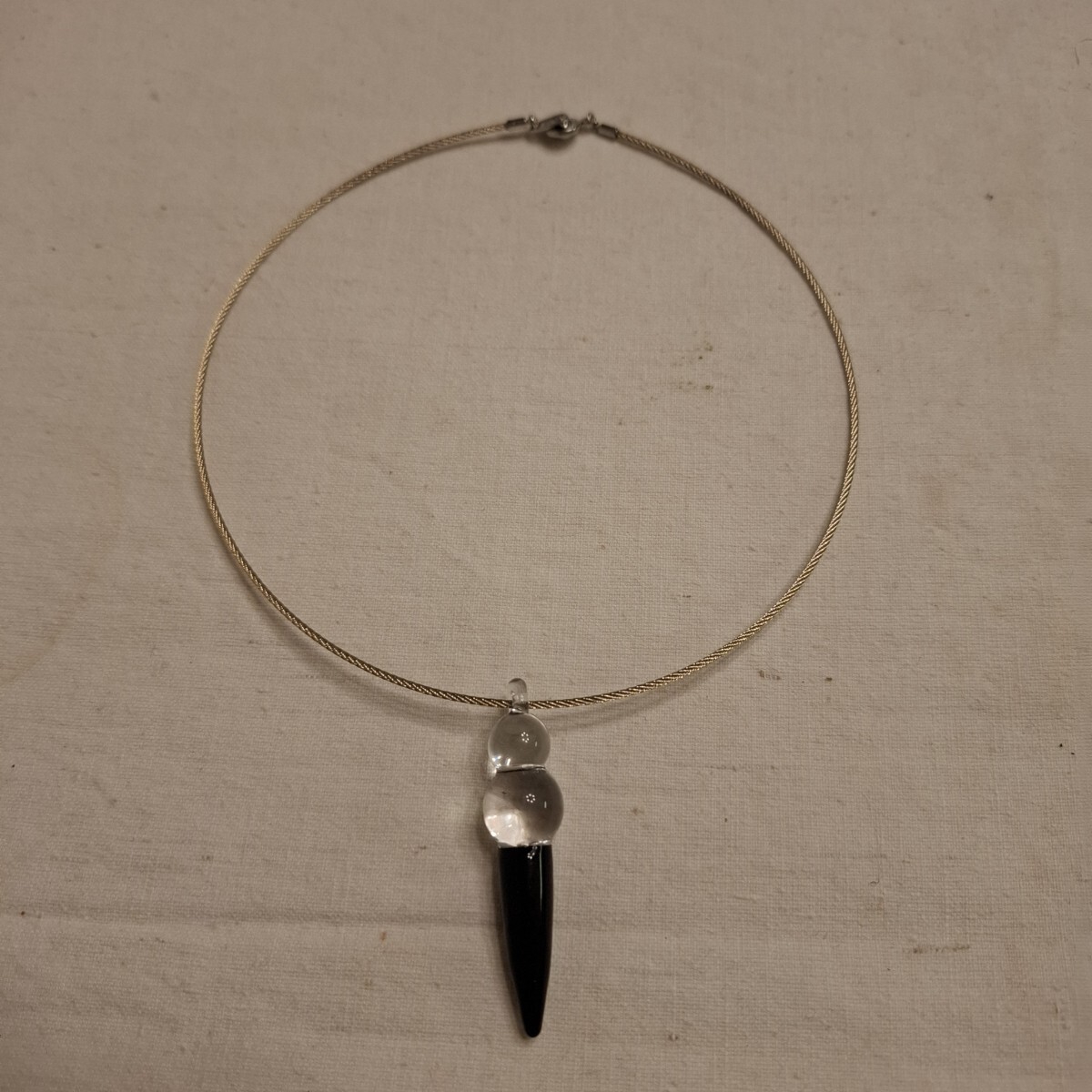 - HARIO 上島あい子コラボ 約14.7g ネックレス ワイヤーチョーカー ガラス ブラック クリア 作家物