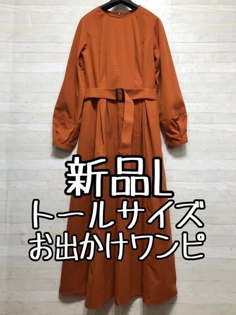 - 新品☆Lトール♪オレンジ系♪タックフレアおしゃれマキシワンピース〇B531