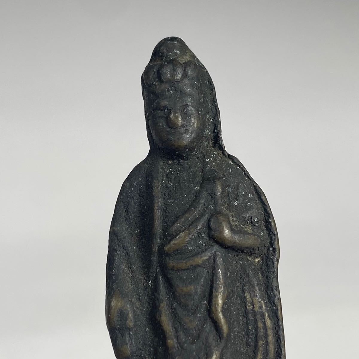 - 古銅 時代物 仏教美術 仏像 観音像 置物 6cm 古美術 銅製 時代 骨董 懐中仏 観音菩薩像