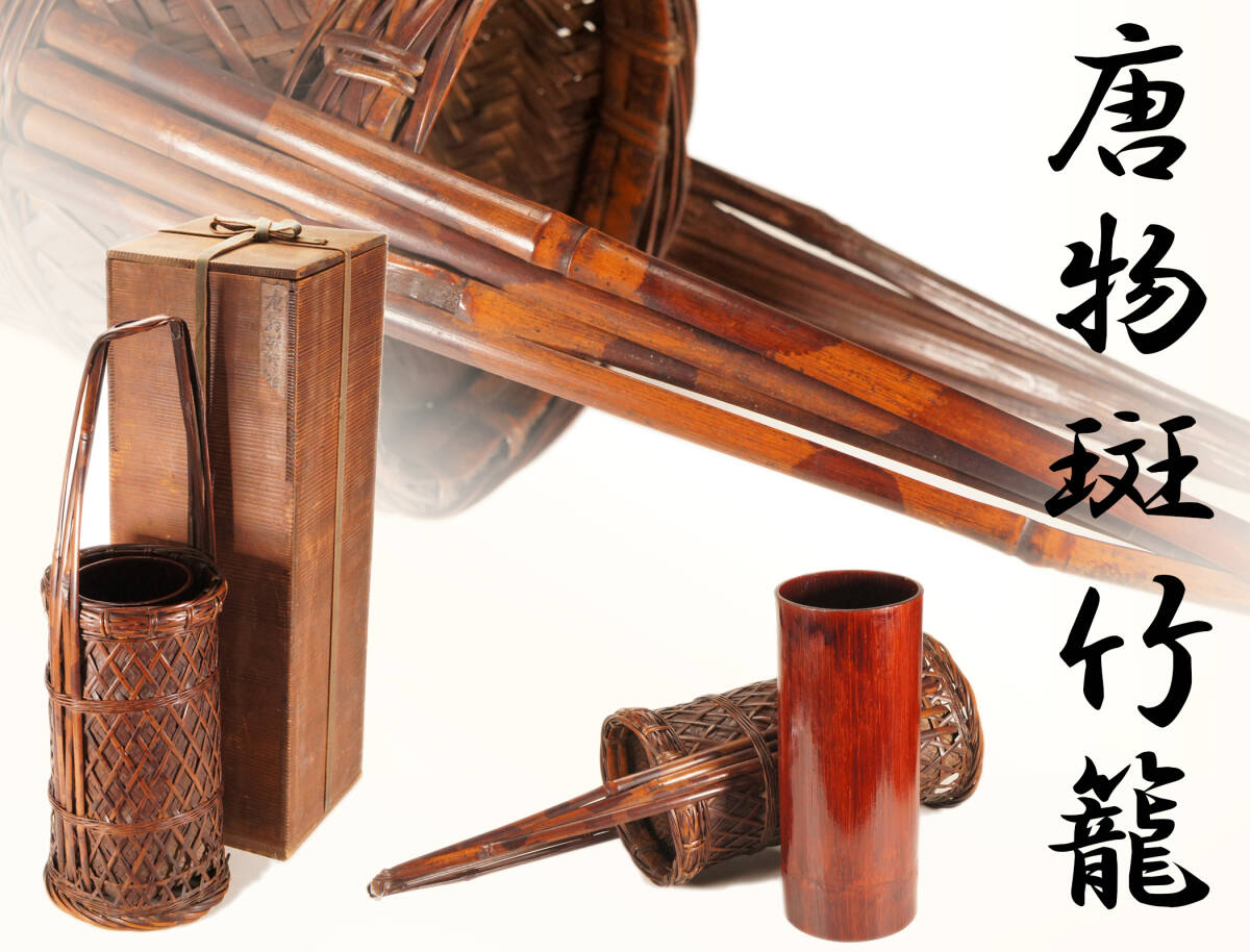 > 【asiya21】竹細工 斑竹 唐物斑竹籠 竹編 手付 花籃 花籠 箱付◆紅斑竹 華道 竹籠 中国美術 コレクション 蔵出し 古美術品 即決 送料無料