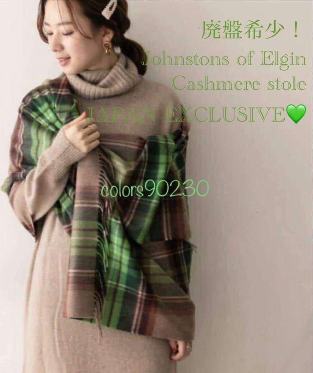 > 廃盤希少!日本別注☆未使用 Johnstons ジョンストンズ カシミヤ ストール グリーン×ブラウン チェック 大判マフラー エストネーション