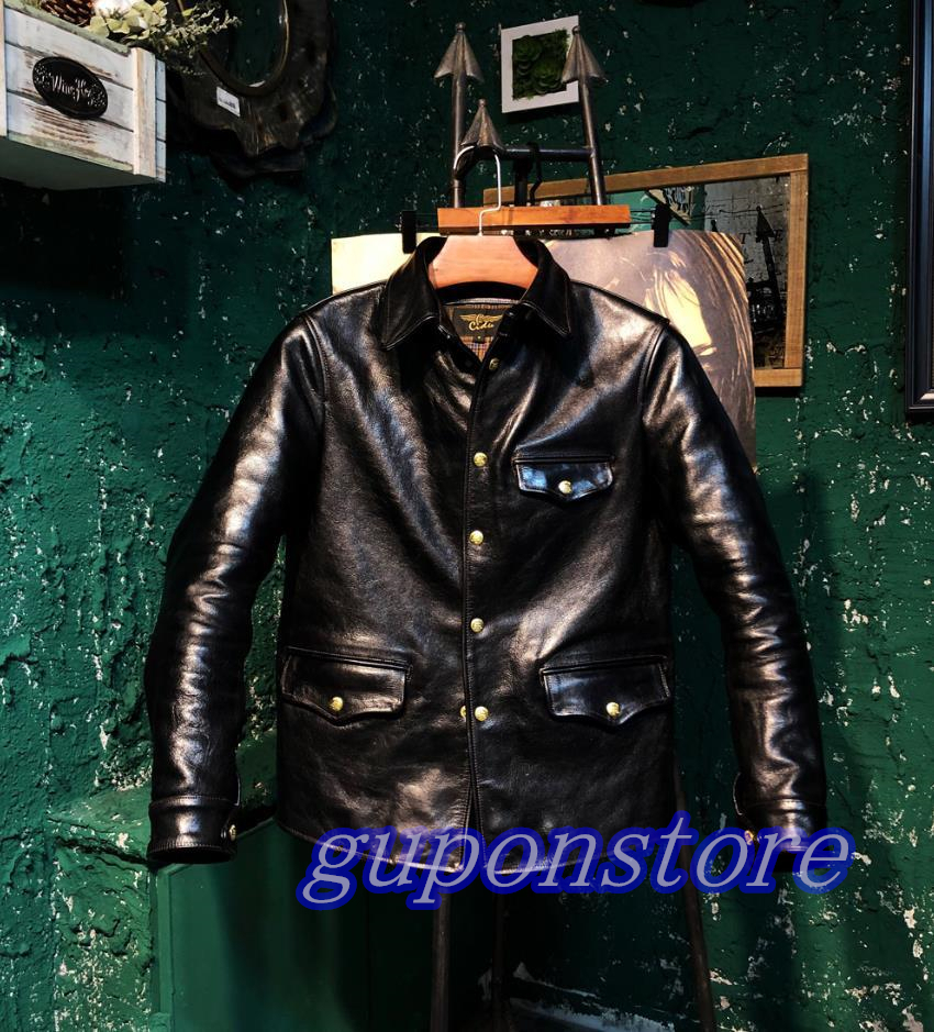 - 新品茶芯ホースハイド 30's ワークコート レザージャケット ブラック サイズ選択可 カーコート ブレーキマン ベジタブルタンニンなめし馬革
