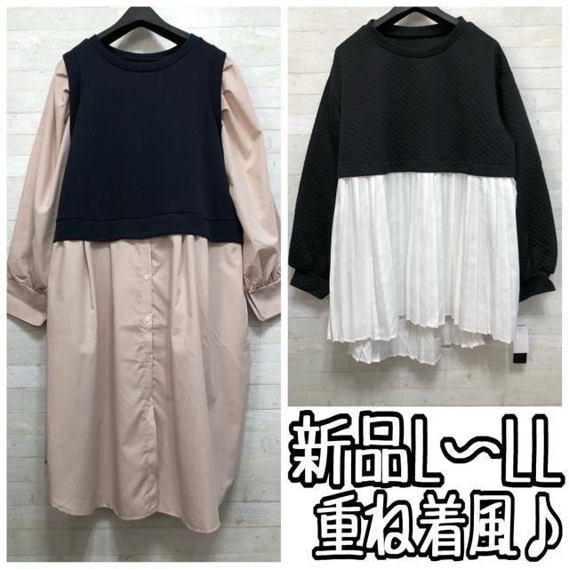 - 新品☆L~LL♪フェミニンな重ね着風トップス2枚セット♪〇B561