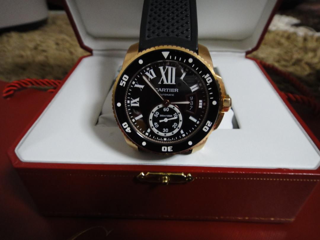 - カルティエ カリブル ドゥ ダイバー 750PG ラバーベルト 自動巻 保証書付き