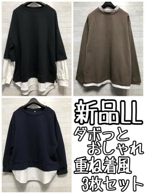 - 新品☆LL重ね着風プルオーバー3枚セット♪なめらか素材も〇B579