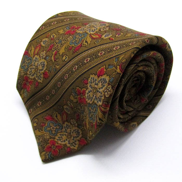 - ニナリッチ ブランド ネクタイ ストライプ柄 花柄 シルク フランス製 PO メンズ カーキ NINA RICCI