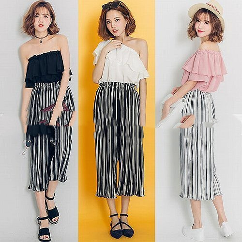 - LDL2226# レディース 大きいサイズ☆オフショルトップス×ストライプワイドパンツ☆ ブラック 5L