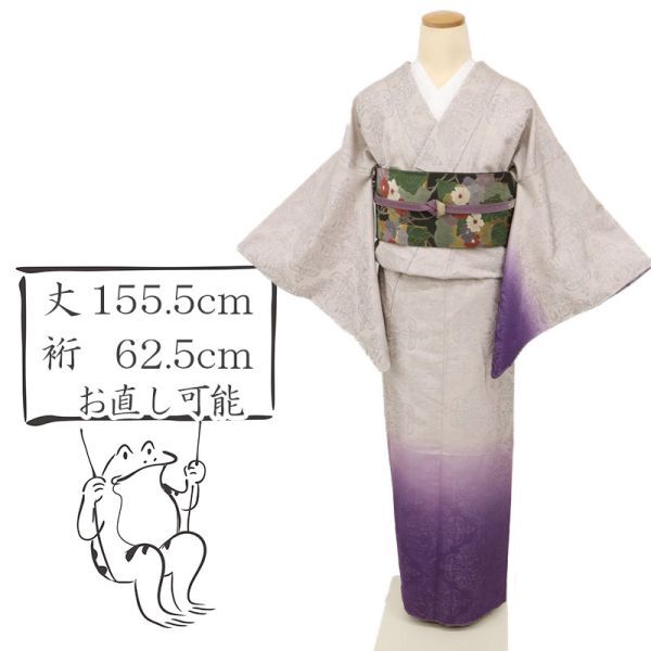 - 【付下げ】 特選 お召 煌びやかアラベスク文様 薄梅鼠色 袷正絹着物 SP9-8