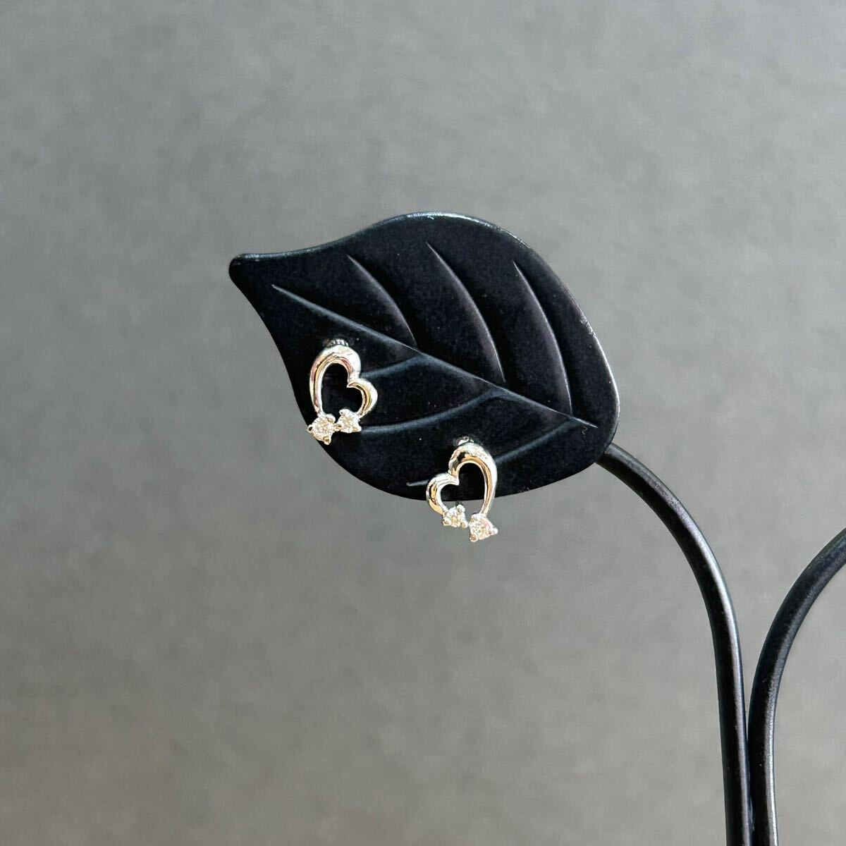- 【新品】K18WG★オープンハートデザインピアス ダイヤモンド 18金ホワイトゴールド キャッチ