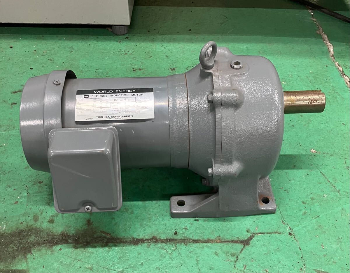 - 東芝 TOSHIBA WORLD ギアモーター ENERGY 3 PHASE INDUCTION MOTOR 0.4kW 4POLES ジャンク品 C-441