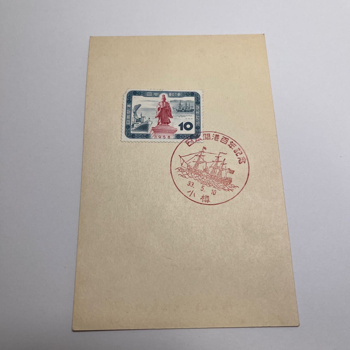 - 昭和33年 日本開港百年記念切手 初日カバーFirst day Cover 小樽印 母の日こどもの日5円はがき【送料110円】『O1』