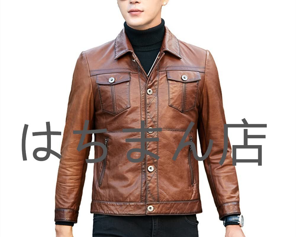 - 革ジャン メンズ レザージャケット ラムレザー 本革 シングル ライダースジャケット レザーコート 本革 ジャンパー ブラウン L-4XL