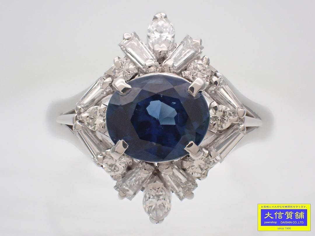 > Pt900 プラチナ ダイヤ取巻き サファイアリング S1.43ct D0.56ct 12号 6.87g 中古A 【送料無料】 C-9210