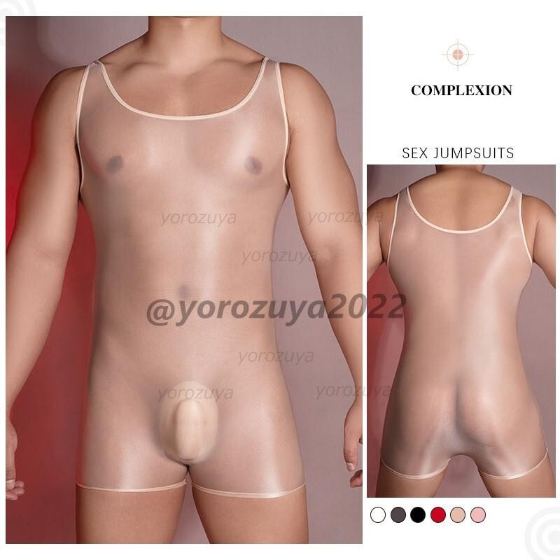 > 158-174-20 メンズ 光沢シースルー フィッティング ボディスーツ【ベージュ,F】男性 コスプレ 露出 ナイトウェア ランジェリー セクシー .2