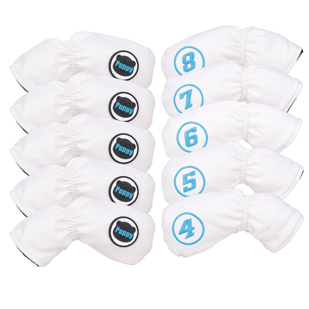 - アイアンカバー ゴルフカバー 10点セット 番手付 4番~9番 AW PW SW 防水 白 クマ