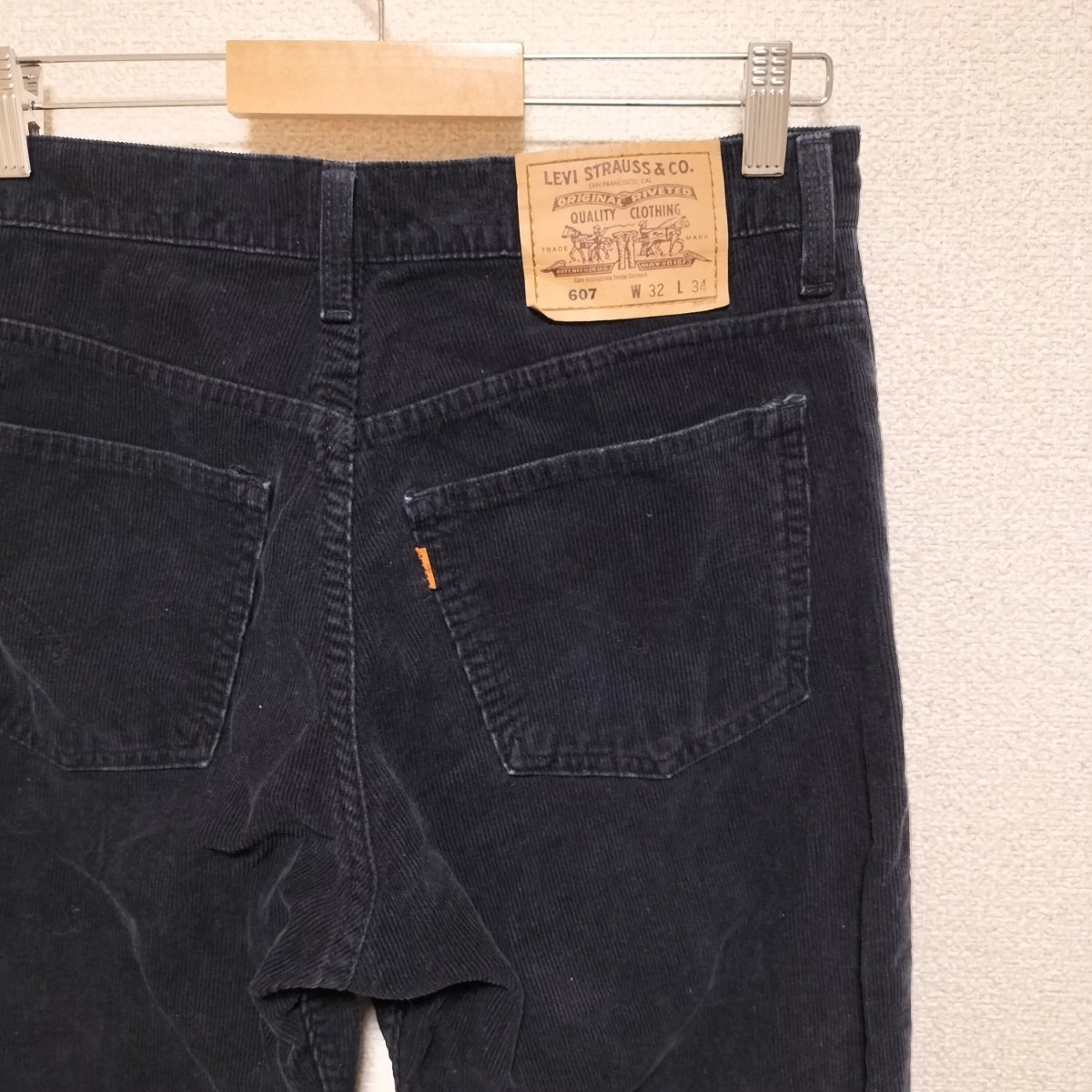 > 綺麗☆90s Levi's607 コーデュロイパンツ ボトムス W32 黒 ストレート 日本製 J09 ビンテージ オールド リーバイス607 オレンジタブ USED