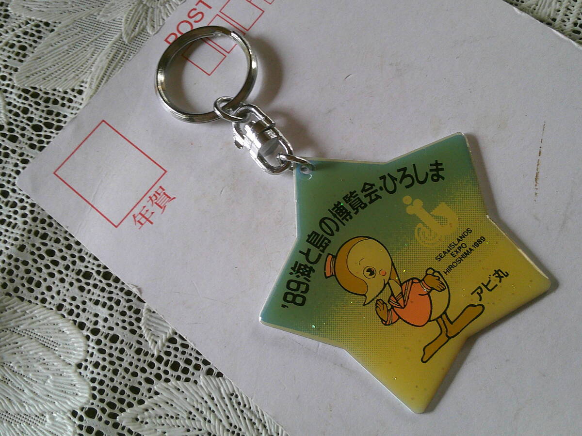 > レトロ キーホルダー【89海と島の博覧会ひろしま アビ丸】 1989年 レア 当時物 コレクション 兼用 可愛い コレクター 懐かしい 星型