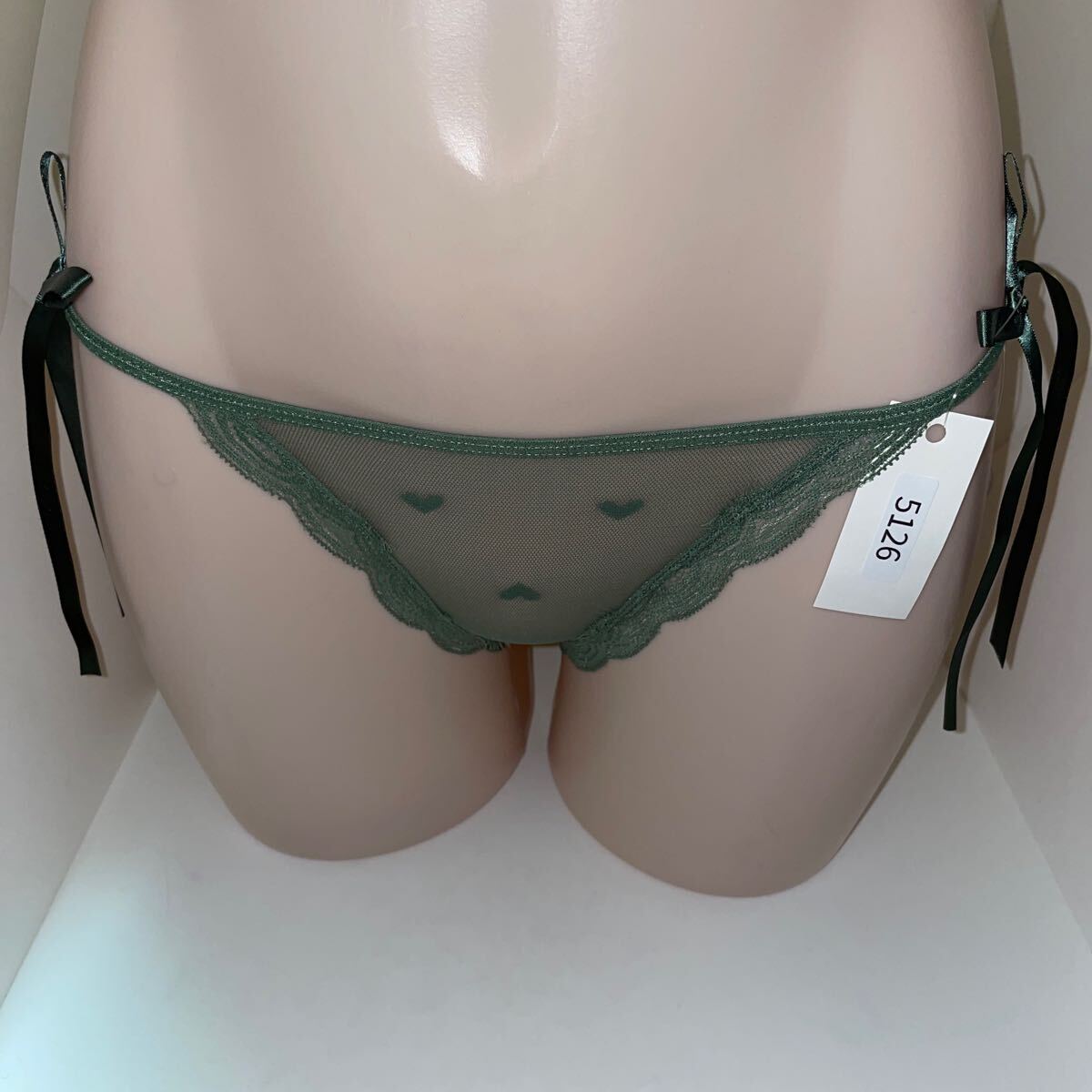- 5126★カーキ★リボン×ハート柄×シースルー★フルバックショーツ