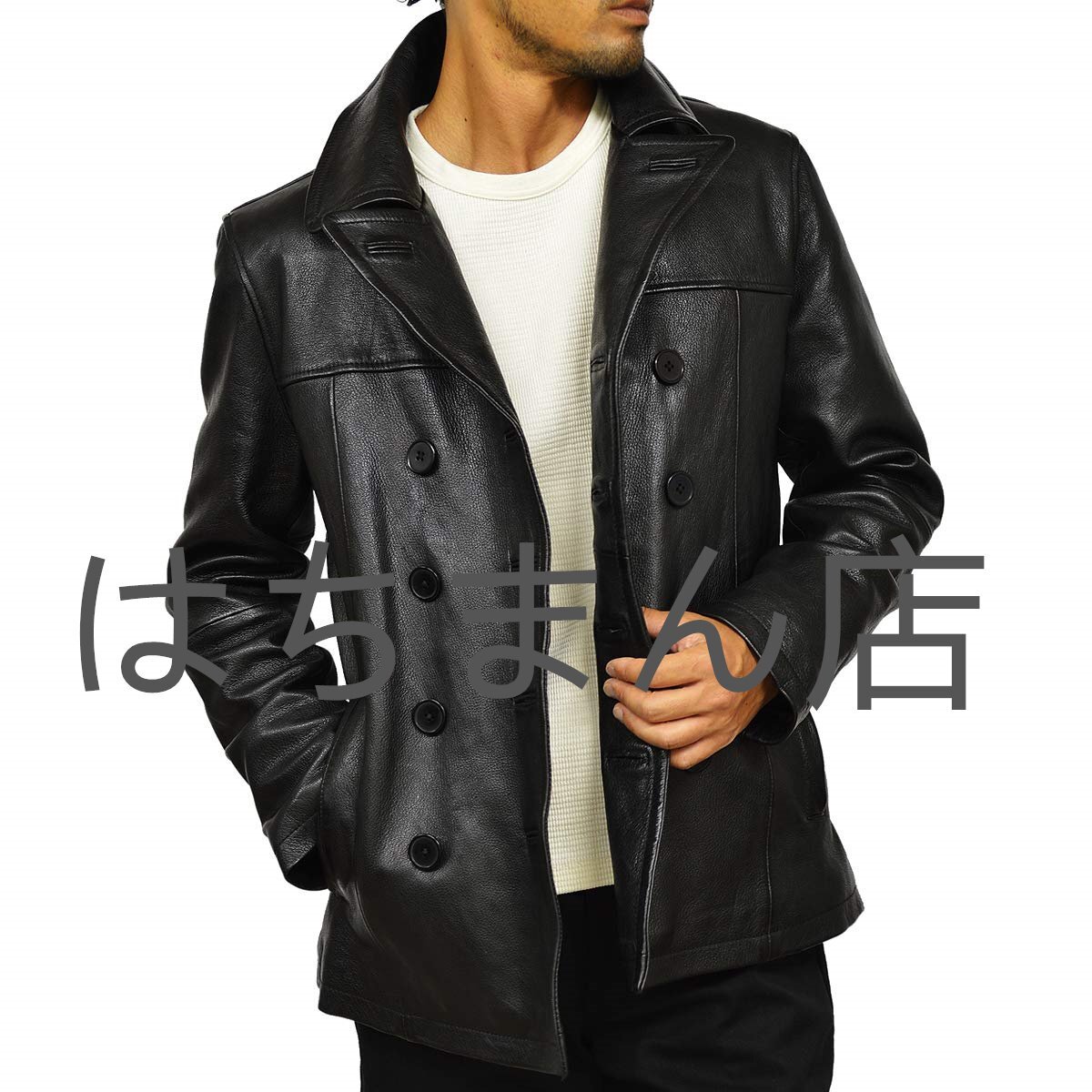 > 本革 ピーコート メンズ レザージャケット レザーコート ライダースジャケット 革ジャン 皮ジャン Pコート 革コート ブラック S-3XL
