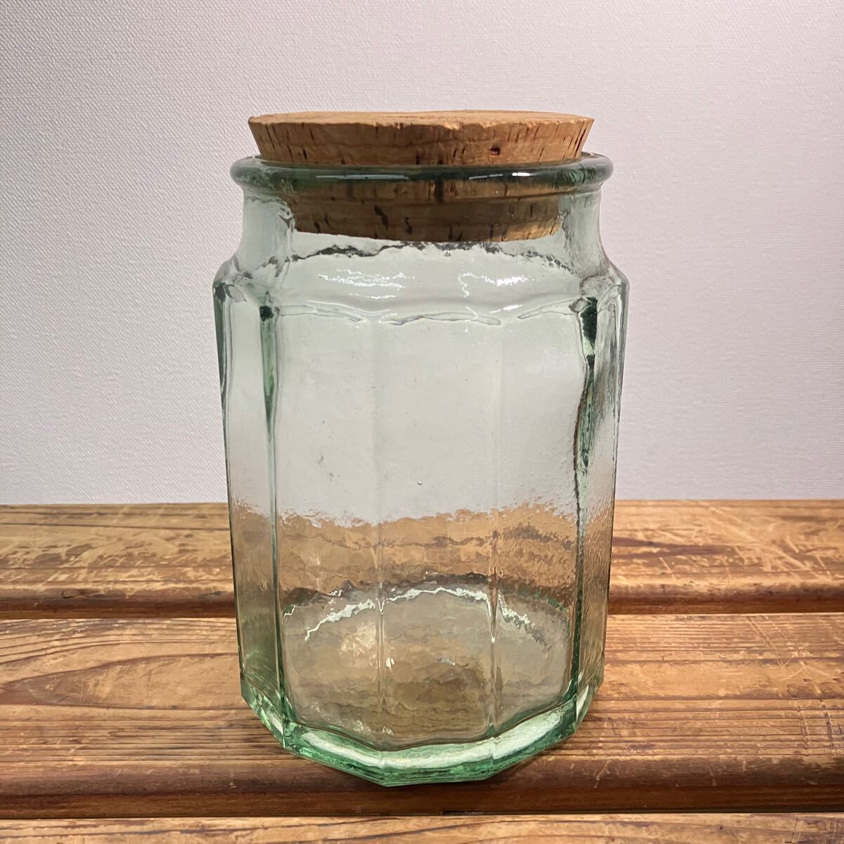 - 昭和レトロ/ガラス コルク瓶 保存瓶 キャニスター 気泡 インテリア 瓶 当時物 ビンテージ 管T-197