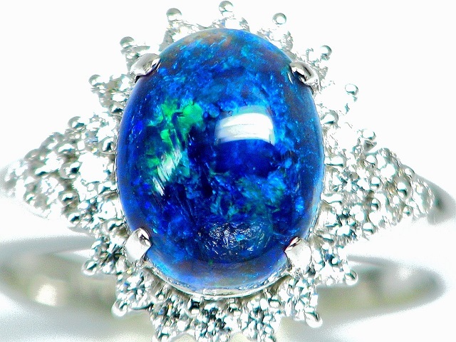 > 【宝石屋本舗】2.195ct天然ブラックオパール ダイヤモンド0.36ct PT900 リング(GRJソーティング(検査証付)