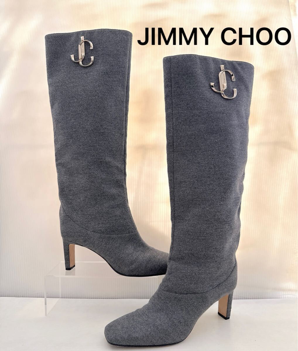 > JIMMY CHOO ジミーチュウ スクエアトゥ ロングブーツ ハイヒール ロゴ入り 靴 正規品極美品 39