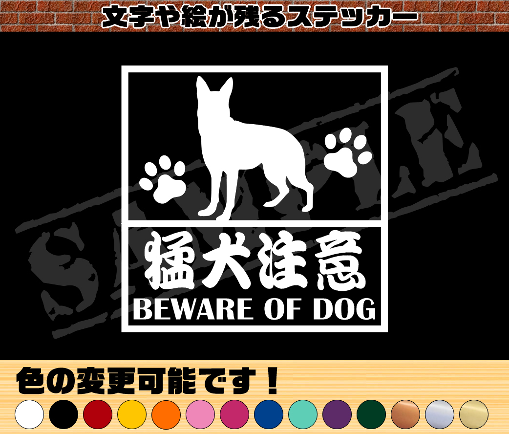 - ■□猛犬注意・シェパード(立ち姿) 四角枠パロディステッカー 9cm×9cm 玄関や車に貼ろう!□■