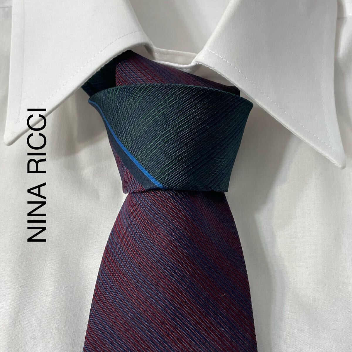 - NINA RICCI ニナリッチ ストライプ ジャガード シルク ネクタイ グリーン ワイン ブラック ブルー TG754